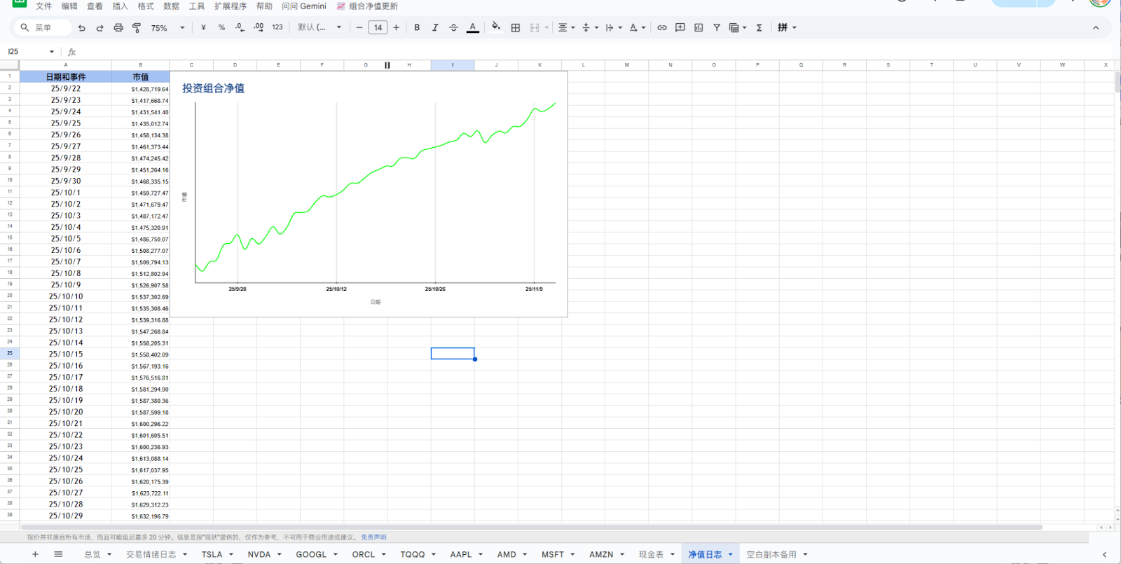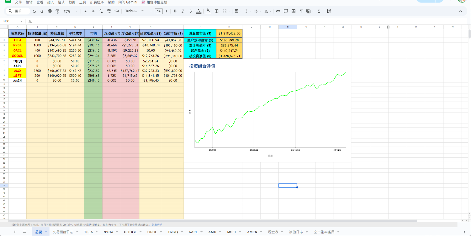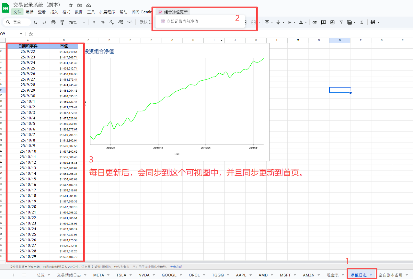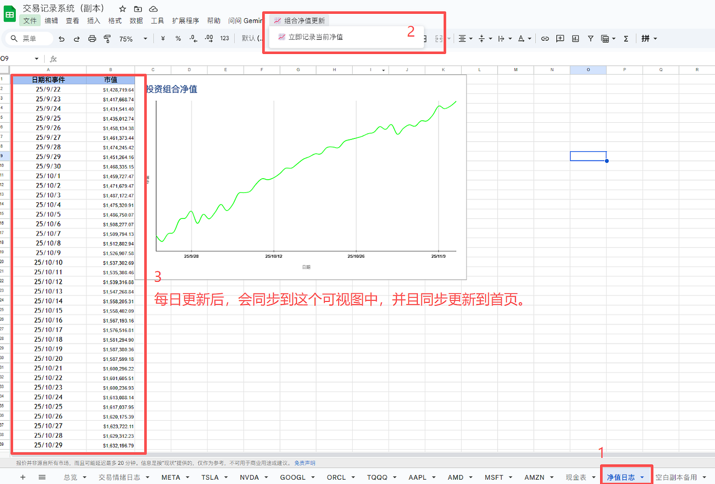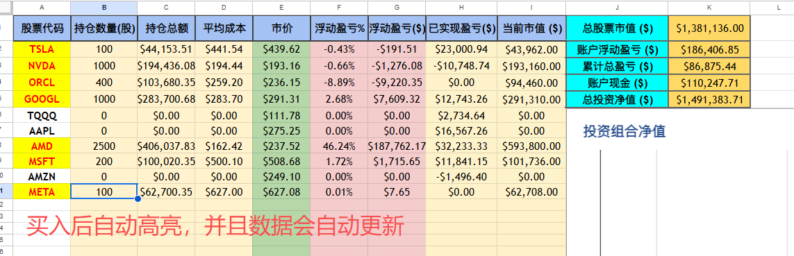因为有了上面的数据,这里我写了一个脚本,可以设置每天美东收盘后自动运行一次,即可更新当天净值;也可以手动更新本次买入后的净值。