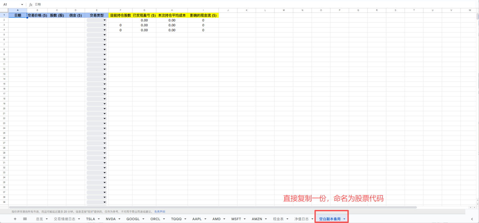 复制 空白副本备用.csv,将其重命名为新的股票代码(例如 AAPL.csv)。